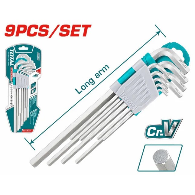 طراحی ابزار باید طوری باشد که علاوه بر کارایی بالا، جای کمی اشغال کند. مجموعه 9 عددی آلن ستاره ای بلند توتال توانسته تمام نیاز کاربر را برطرف کند. این مجصول پرفروش، با داشتن طراحی ارگونومیک، ساخته شده از مواد باکیفیت و بادوام است. ابزاری پرکاربرد است که در هر جعبه ابزاری جای دارد. این محصول با داشتن 9 آلن با سایزهای متفاوت، جای چند ابزار کار میکند.